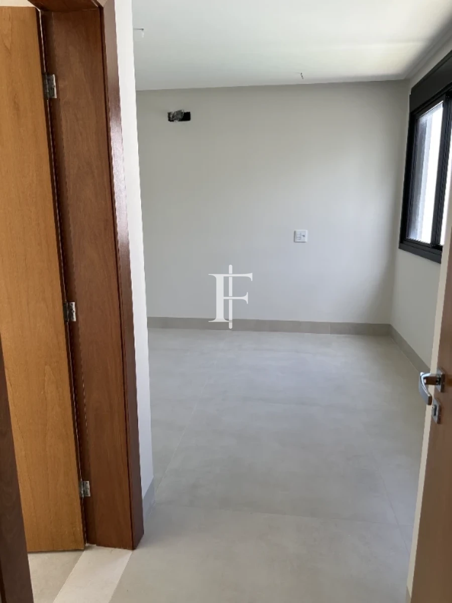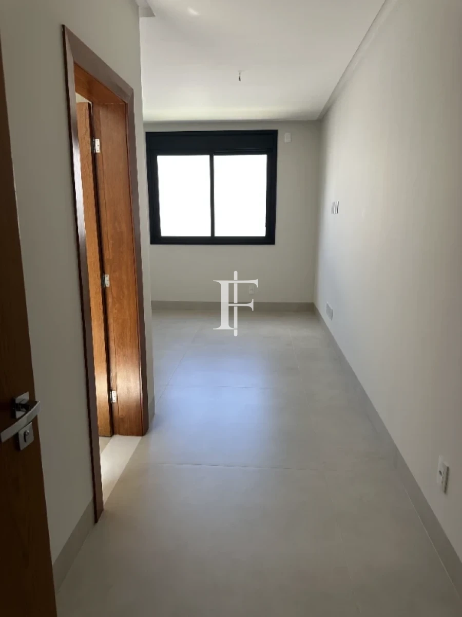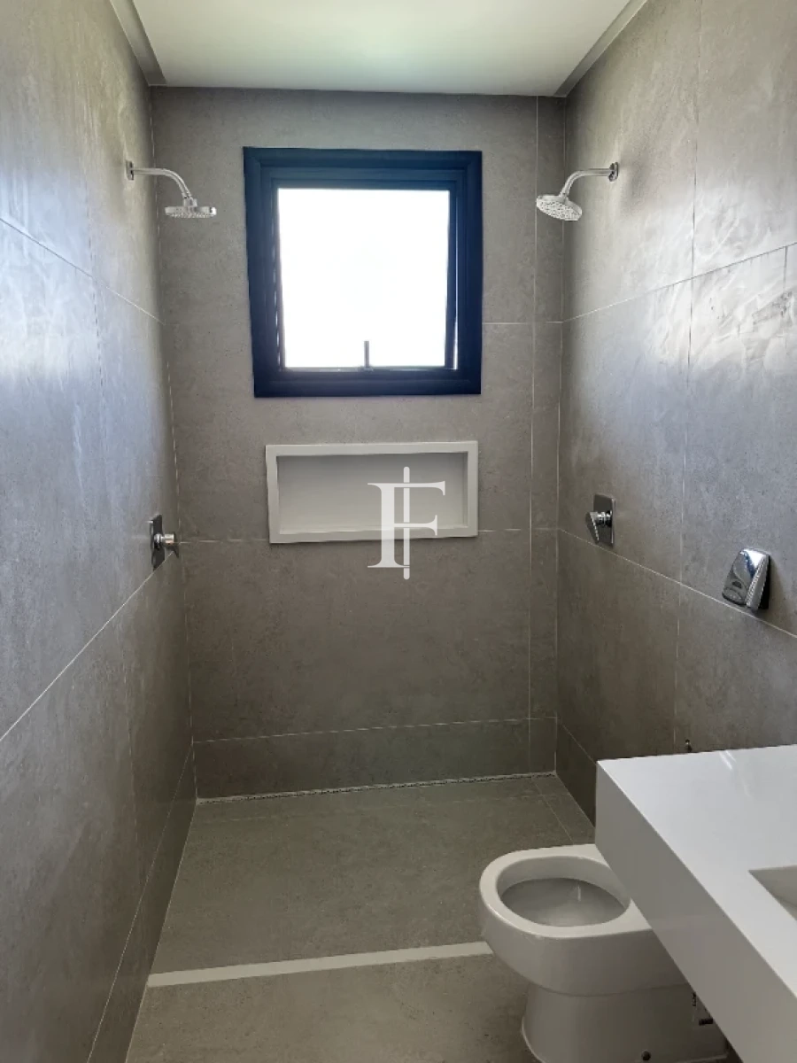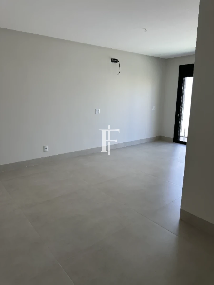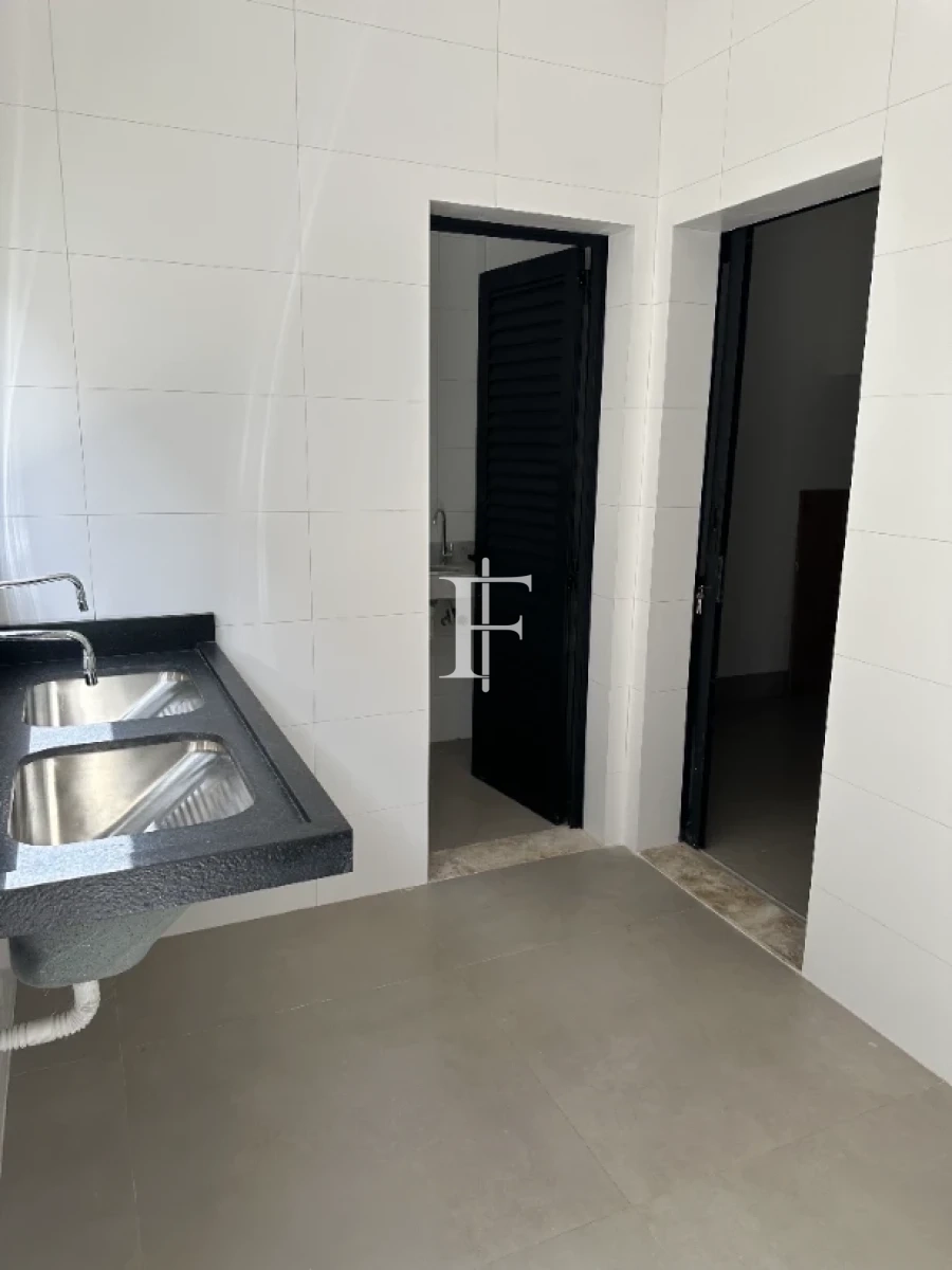 O imóvel possui 380m² distribuídos em 5 suítes amplas, sala de estar/jantar e área gourmet. Fachada revestida em pedra Bege Bahia, esquadrias em alumínio preto, pisos cerâmicos Eliane retificados e bancadas em quartzito Wakanda Light na cozinha.