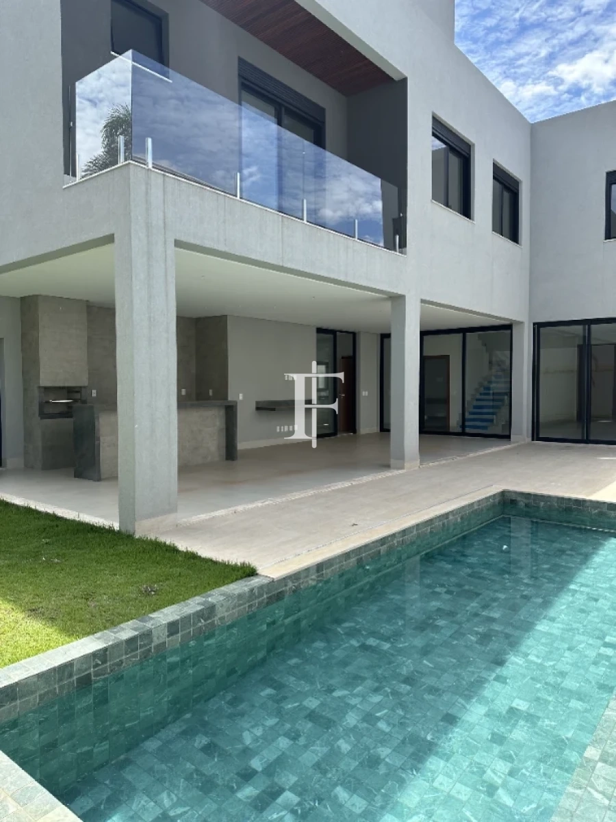 Casa 5 quartos em Alphaville Araguaia, Goiânia com acabamentos premium e aquecimento solar. Sobrado em condomínio fechado com 380m² de área construída em lote de 501m².